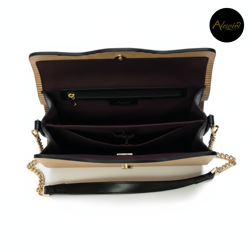 💛 Hardware: Polished gold tone details and signature Alavici plaque.