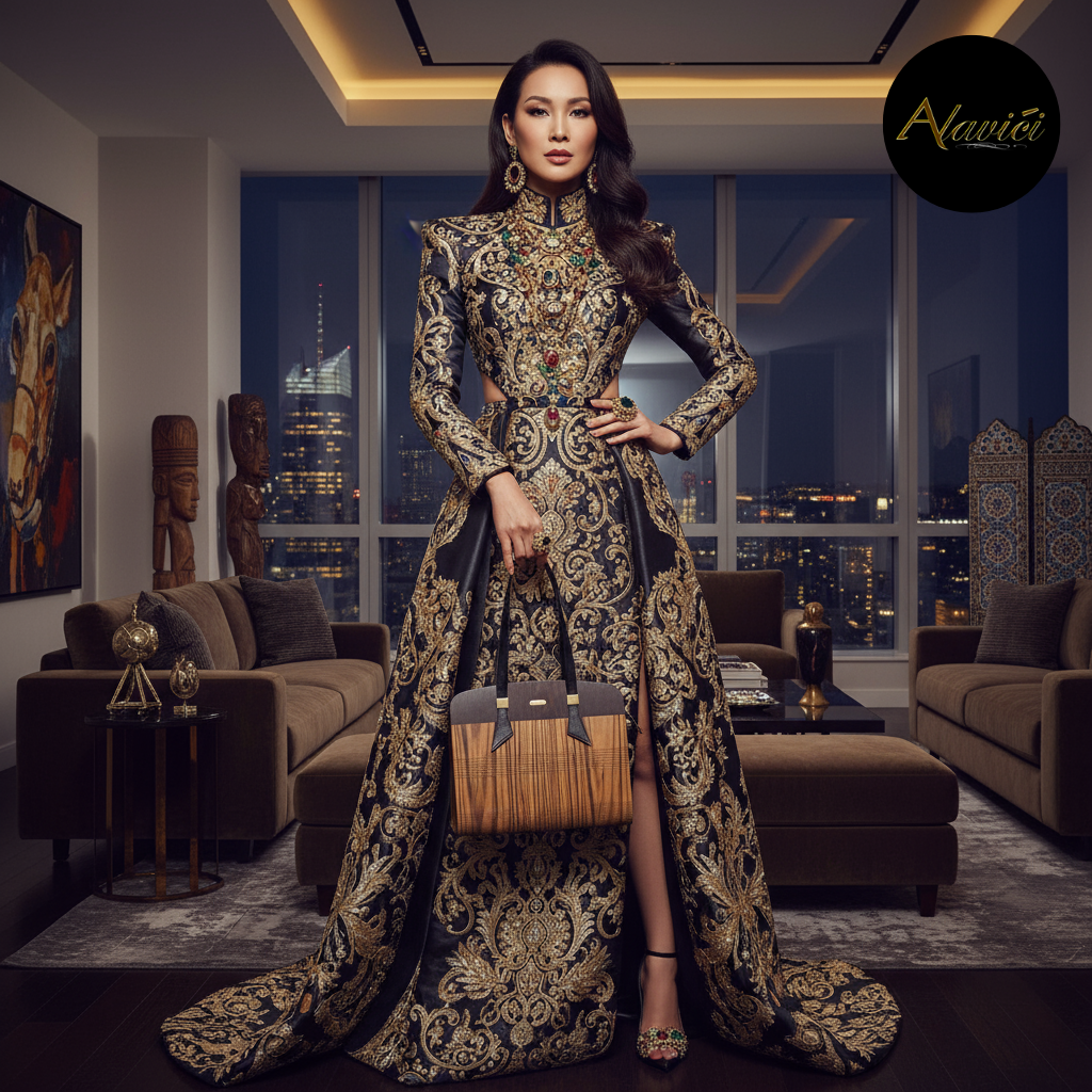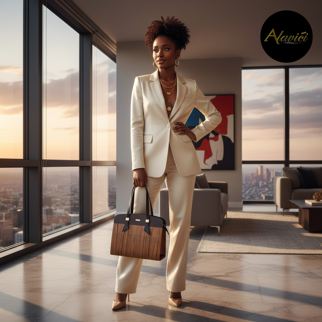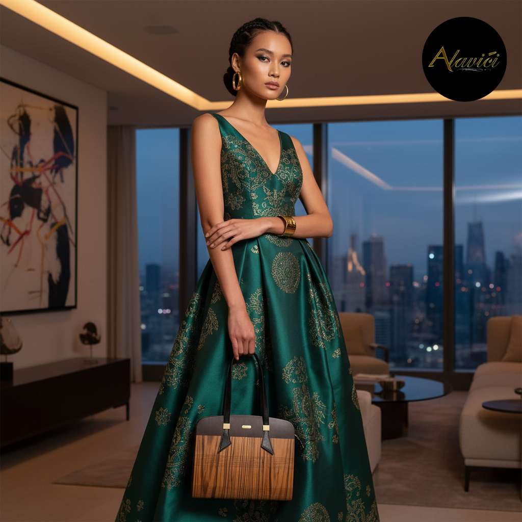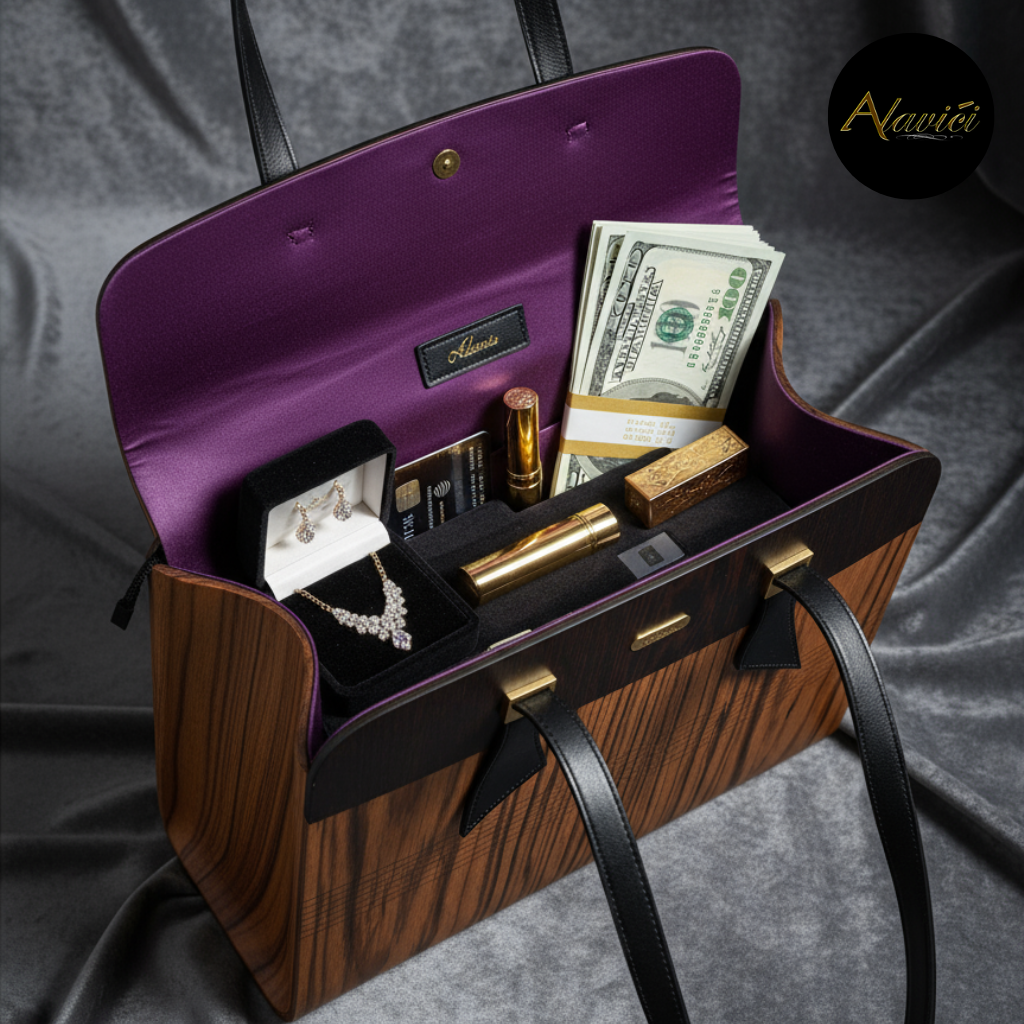 The Zebrawood & Deep Ebony Dual-Tone Tote is a masterclass in natural contrast. Featuring the bold, linear striations of exotic zebrawood paired with the commanding depth of ebony veneer, it evokes both vitality and authority. A structured profile with gold-accent hardware and long black leather straps elevates it from mere accessory to statement architecture for the hand.
